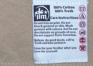 We do our utmost to produce garments with love, that are value for money. The t-shirts we use are heavy gauge, preshrunk 100% cotton; with double stitched sleeves, neck, and hem. Our labels are woven to perfection. The prints are done by hand several times over and cooked at a high temperature - to ensure that they’re long lasting. Let our care label tell you how to best look after yourself and your garment. |