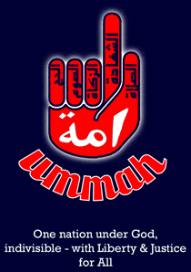 Ummah - Arabic for community, next to US Pledge of Allegiance stating: